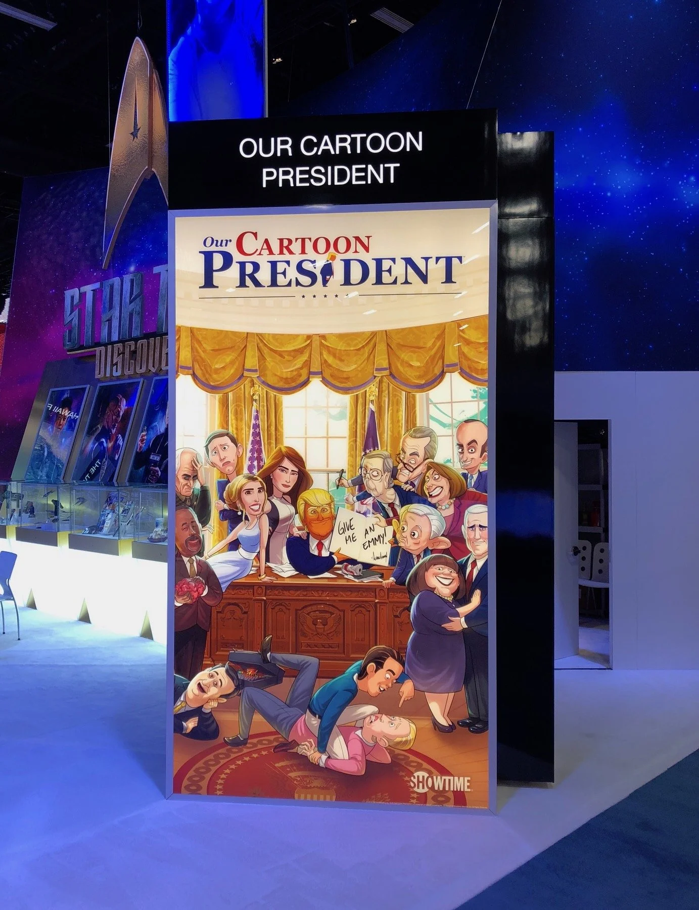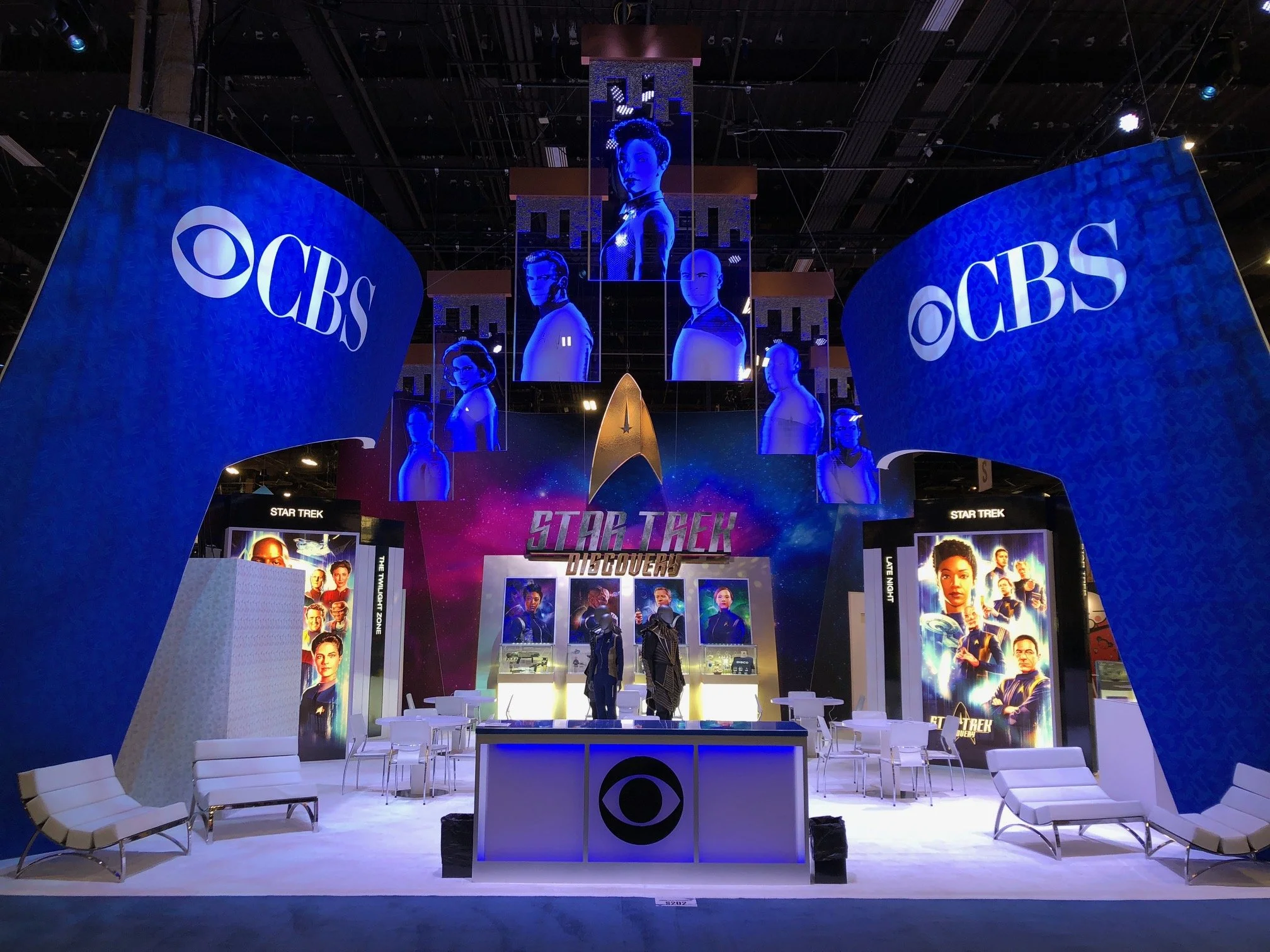 CBS booth at ComicCon San Diego, California. This exhibition spotlights Star Trek Discovery with other shows like American Vandalism on Netflix, The Twilight Zone, The Cartoon President, etc. Production includes prints, etchings, merch production.